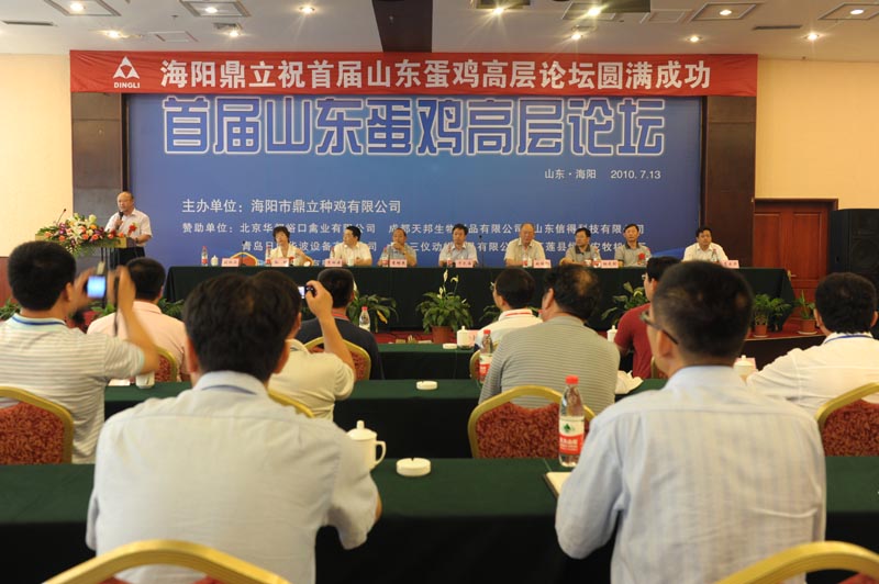 7月13日,海阳市鼎立种鸡有限公司在海阳市黄金海岸大酒店举办首届山东蛋鸡高层论坛,来自山东省及周边省市的700多名养殖者代表参加了会议。