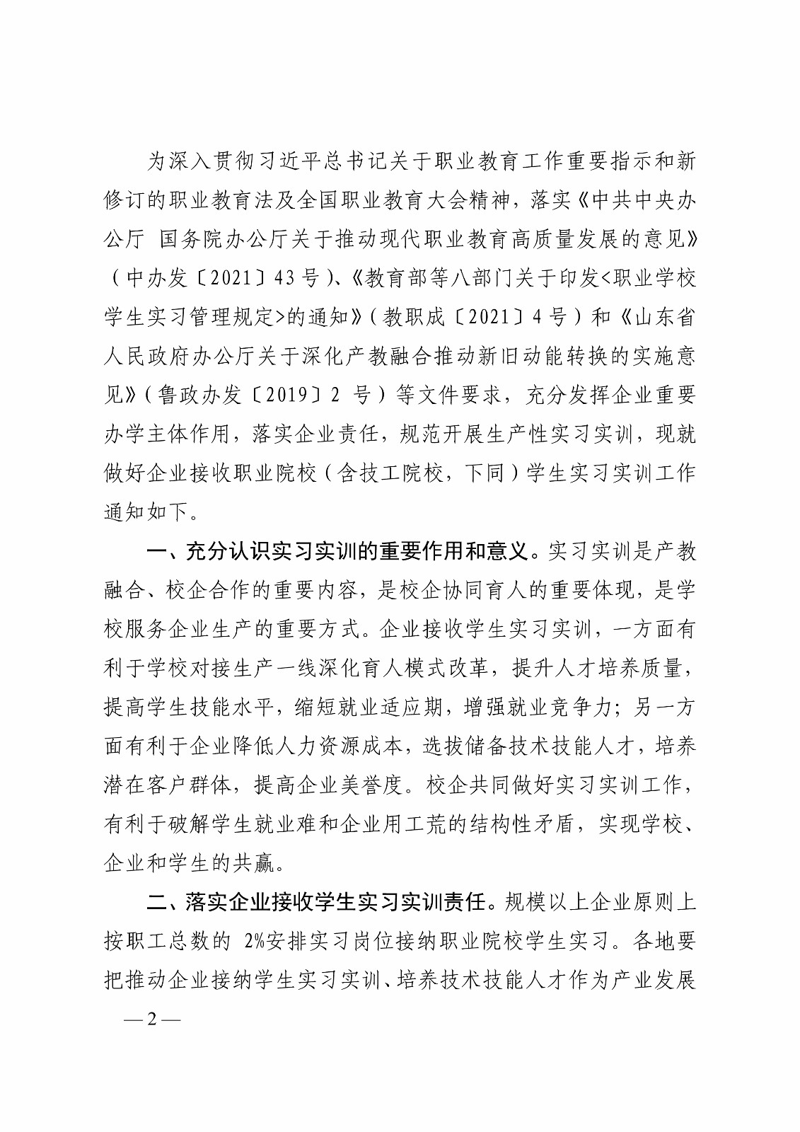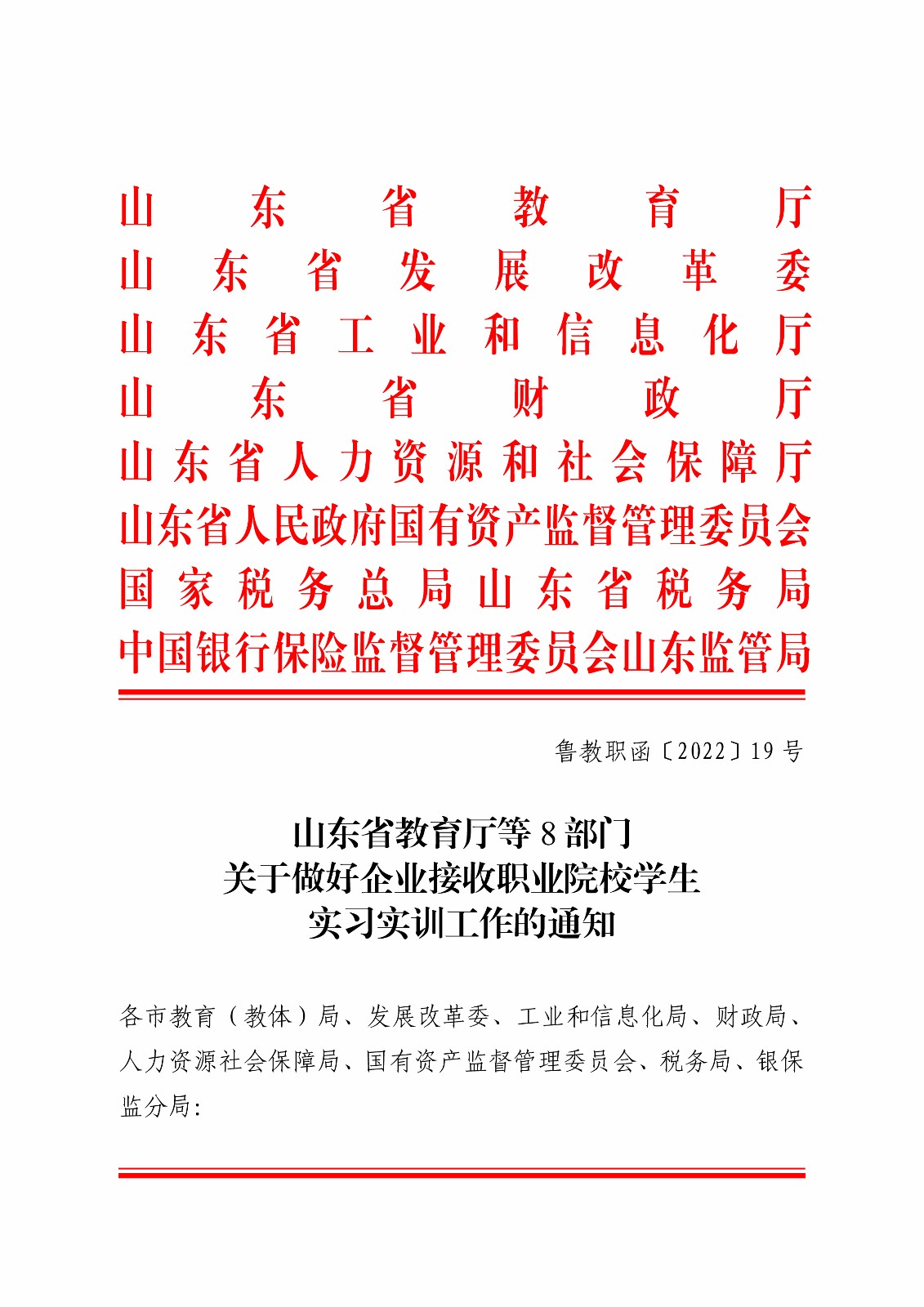 山东省教育厅等8部门关于做好企业接收职业院校学生实习实训工作的通知