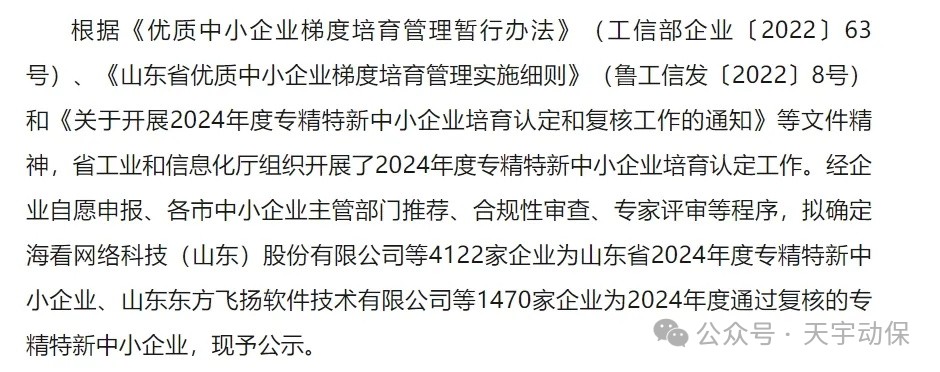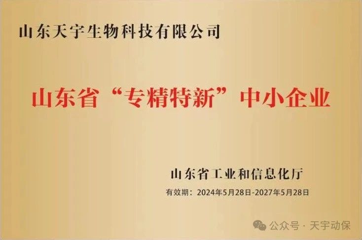 公司始终坚持以市场需求为导向,以技术创新为动力,以质量求生存,以服务求发展,为客户提供优质、高效、专业的产品和服务。“专精特新”中小企业荣誉的获得,是对山东天宇生物科技有限公司专业精神的肯定,也是对公司未来发展的激励。这一荣誉不仅是对公司过去努力的认可,更是对公司未来发展的期待。公司将以此次专精特新中小企业认定为契机,继续秉承“专精特新”的精神,不断提升自身实力,为客户创造更大的价值,为社会做出更大的贡献,期待公司在未来的发展中再创辉煌!