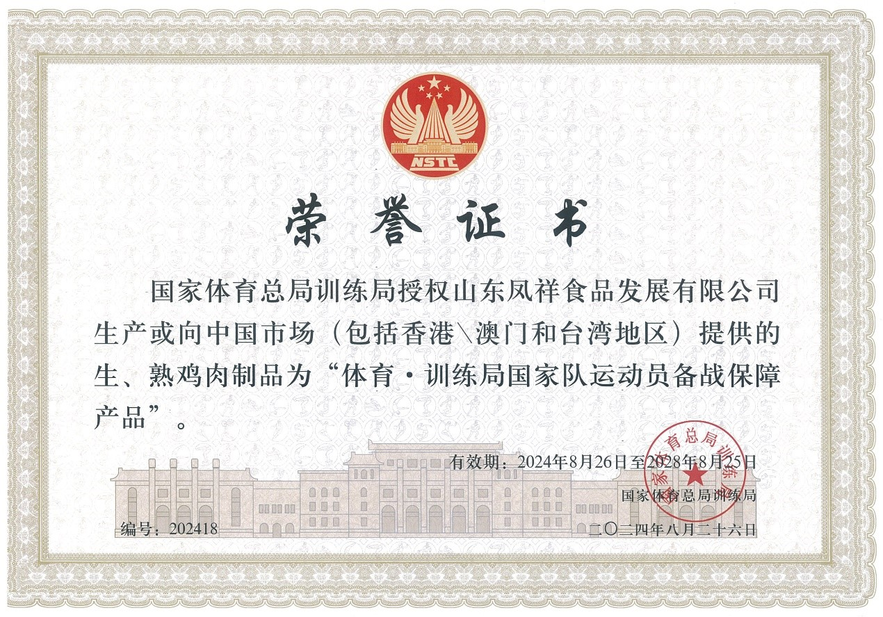 据了解,自2018年首次入选国家队运动员备战保障产品以来,凤祥产品在安全性和营养数据等方面,经受住了国家体育总局训练局的所有专业考核,始终把好的品质带给运动员和消费者。同时,凤祥股份以能够为我国体育事业发展尽一份力而倍感自豪,并笃志力行,即便是在最艰难的疫情期间也克服重重困难,全力保障了国家队运动员对高品质鸡肉的稳定供应。在备战2020年东京奥运会、2022年北京冬奥会以及2024年巴黎奥运会等重大国际赛事期间,“凤祥食品”“优形”系列产品全程为驻局训练的国家队运动员提供了营养、健康、高品质的动物蛋白支持。